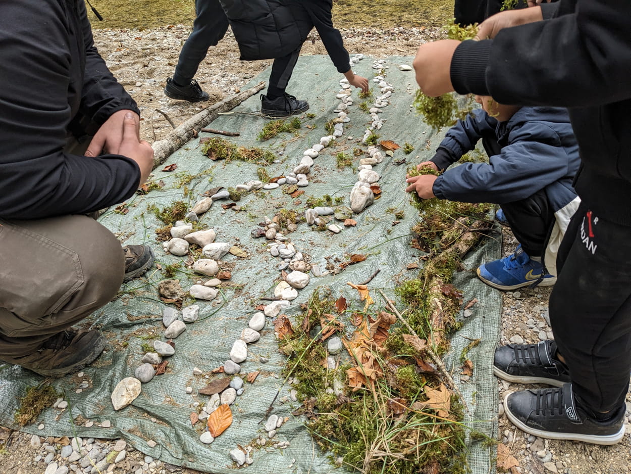 Accompagnés par l’équipe Rivières Sauvages et la Fédération de pêche de l’Ain sur certaines de ces animations, les élèves ont pu créer leur rivière sauvage sous forme de land art et mener l’enquête sur les caractéristiques d’une rivière sauvage. Les classes ont également pu s’initier à la cartographie sensible à travers des temps d’arpentage sensible et de dessins en bord de rivière.